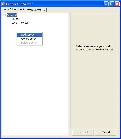 - Right click the empty space in the server list area and left click on